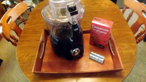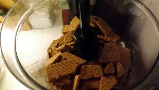 - Poner las galletas en el procesador de alimentos, romperlos en trozos grandes como lo haces.