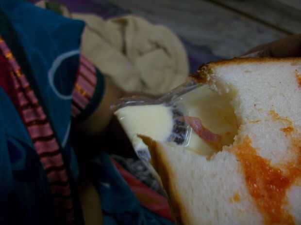 Después de que broma le, conforman apenas sacando el envoltorio y le entrega una REAL extremadamente sabroso, boca fusión sándwich de queso.