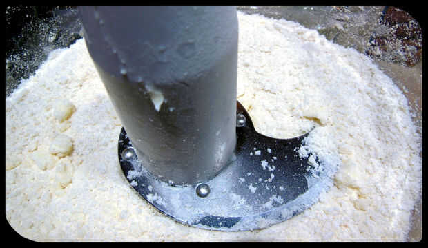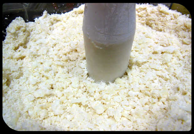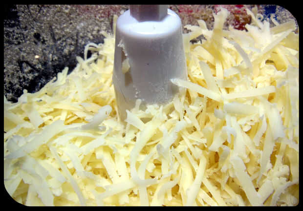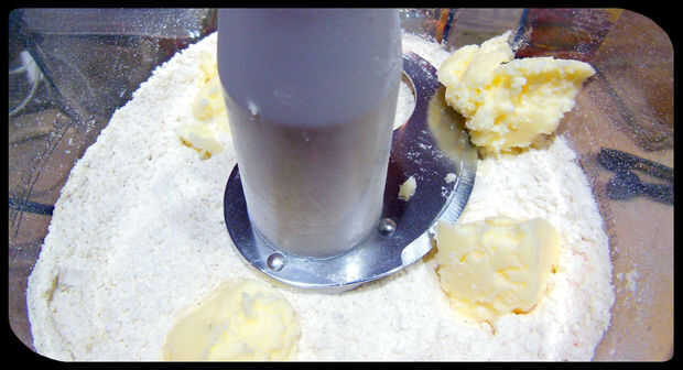 Pulso la harina, sal y pimienta, luego agregar mantequilla y pulse hasta que la mezcla se asemeja a la harina gruesa. Añadir queso rallado y pulse hasta que la mezcla se asemeja otra vez a comida grueso. Las fotos pueden utilizarse como guía. Como con galletas hacer, ser seguro utilizar mantequilla fría y no sobre el proceso de la mezcla o la mantequilla se derrita y tus galletas no será como la luz y escamosa como podría ser.