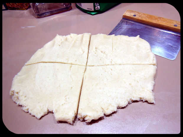 Cuando haya terminado, aplanar la masa y cortar en cuartos con una espátula o raspador de alimentos.
