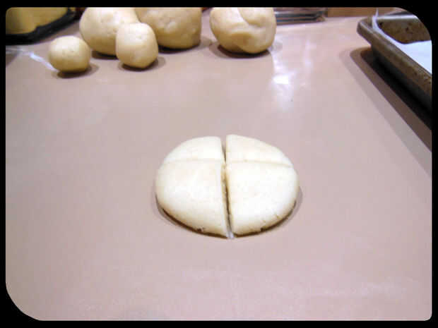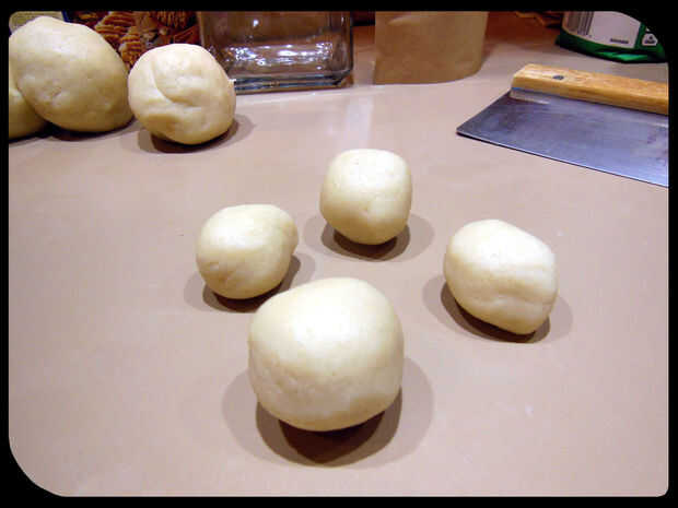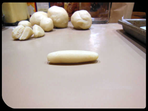 Repita este proceso hasta que todas las bolas de masa se han convertido en pequeños cilindros.