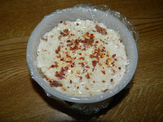 Coloque el queso en un molde o plato pequeño y un lugar en el refrigerador durante la noche para chupar esos sabores.