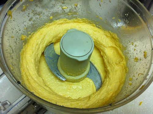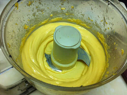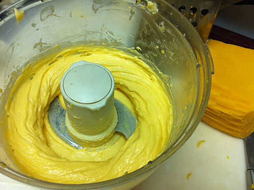El queso se verá probablemente bultos al principio. Tarda unos minutos en el procesador de alimentos realmente unirnos. Se puede saber cuando se hace porque a ver de repente más suave y brillante. Está bien si la fricción de las cuchillas calienta el queso a temperatura ambiente; no está lo suficientemente caliente como para romper los emulsionantes.