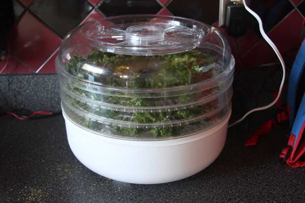 Después de que has puesto la kale en la deshidratadora la tapa y dejar reposar durante 10-12 horas.