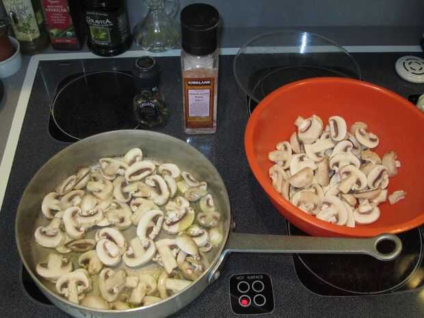 Setas liberará mucha agua cuando se cocinan. Como en el caso de las espinacas, esta agua debe extraerse para asegurar que la natilla se configura. También me gusta dorar las setas porque creo que añade gran sabor al plato.
