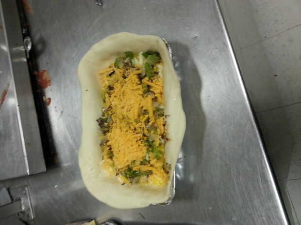 y luego agrega un huevo y la gallina líquido y remata con un queso cheddar y mozzarella