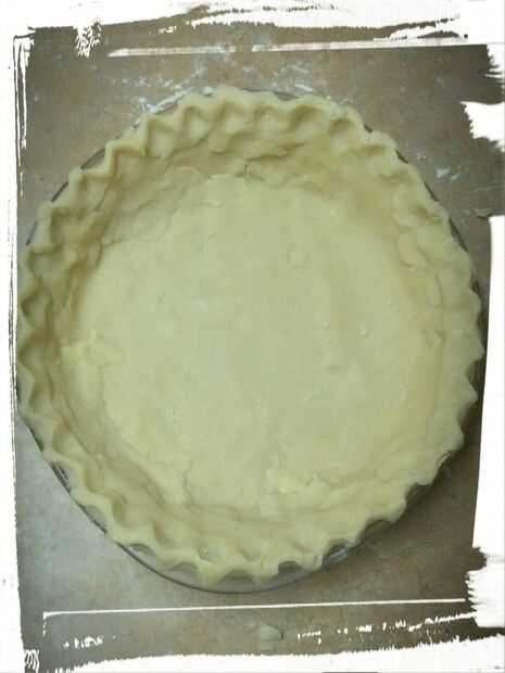 Mezclar harina, sal, manteca y 2 cucharadas de agua y 2 cucharadas de vinagre hasta desmenuzable. Añadir mantequilla y mezcla hasta que todavía desmenuzable y mantequilla se distribuye. Añadir vinagre restante para mantenerlo todo junto. Formar una bola aplanada, envuelva en papel plástico y deja reposar en la nevera durante media hora o más.