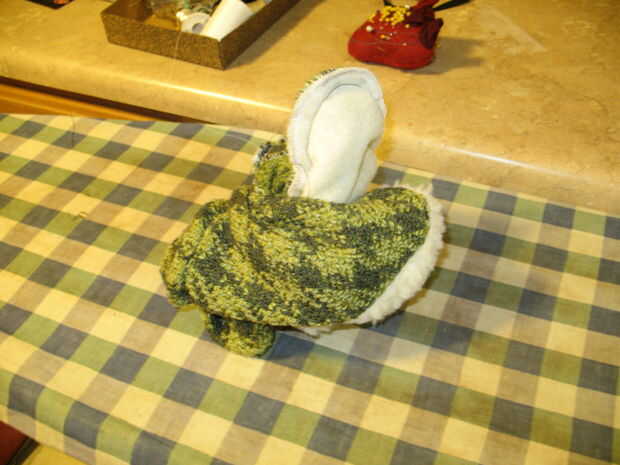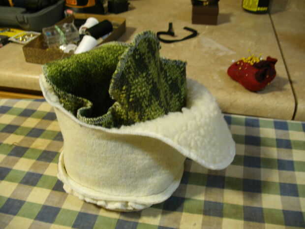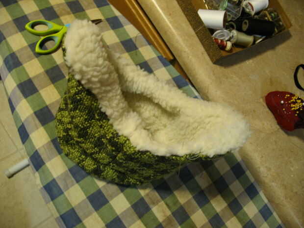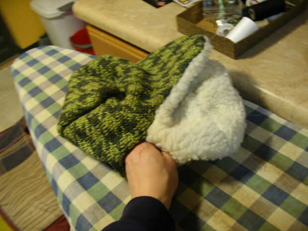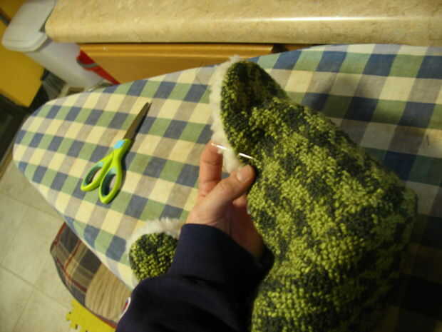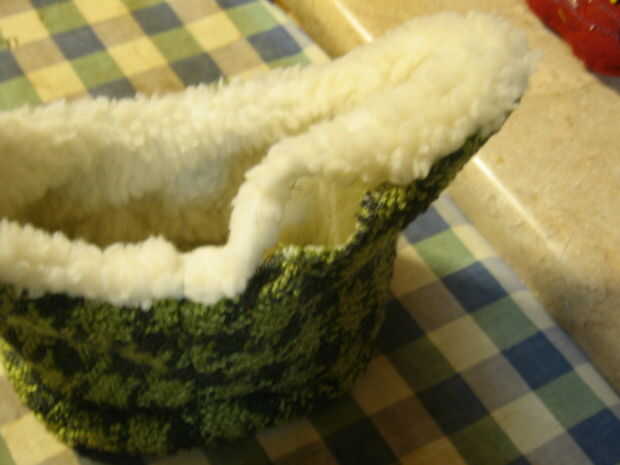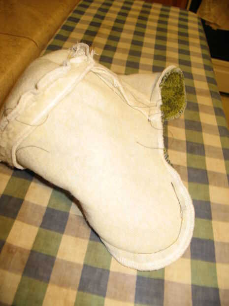 14. coser el asimiento cerrado. Utilizando una buena antigua aguja e hilo, puntada descontó que dejaste abierta para dar vuelta. Esto es especialmente fácil de ocultar en la tela de piel de cordero.