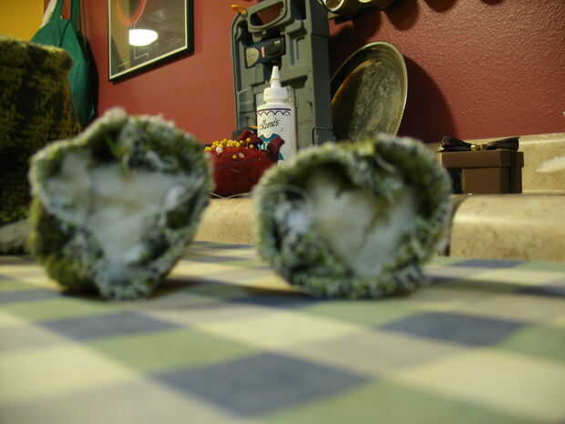 Vuelva al les. No se moleste en costuras de recorte para convertirlas--que wan el bulto dentro. Debe estar parado sus propios como pequeños objetos tridimensionales.