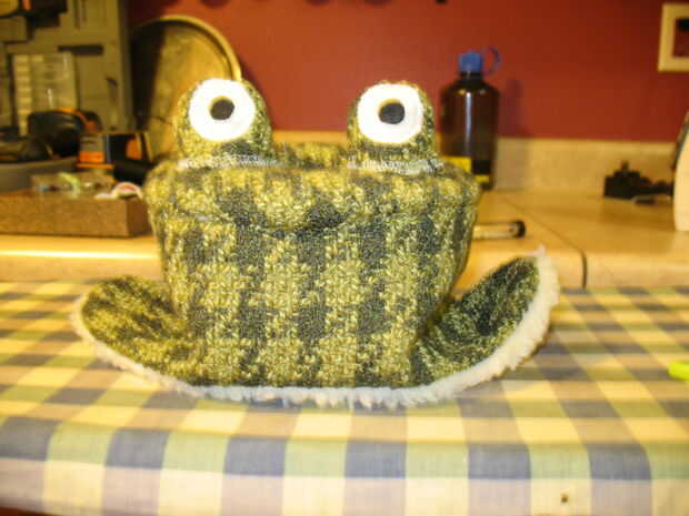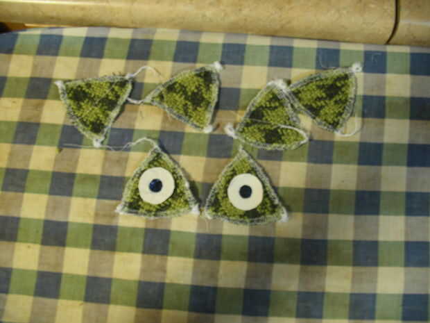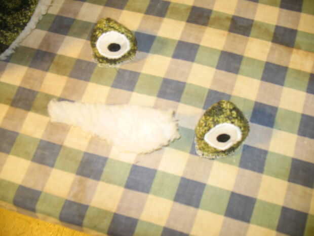17. applique los ojos en el verde. Utilizando una puntada de zig-zag con casi ninguna longitud, máquina apliques los ojos en el verde. Esto hace que un tipo de puntada. Puede que necesite utilizar un puntero para ayudarle a mantener abajo las capas al llegar cerca de la aguja o punzón. Appliqueing círculos, sobre todo tantas pequeños, puede ser difícil.