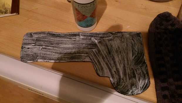Ahora usted puede unir las 3 partes de la base, colocando la lámina de plástico entre las pieles gruesas y delgadas.