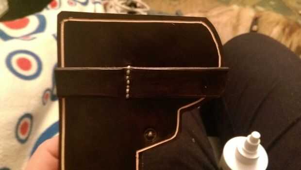 Con la base juntar ejecutar pegamento alrededor del borde del cuero moldeado y fijarla a la base.