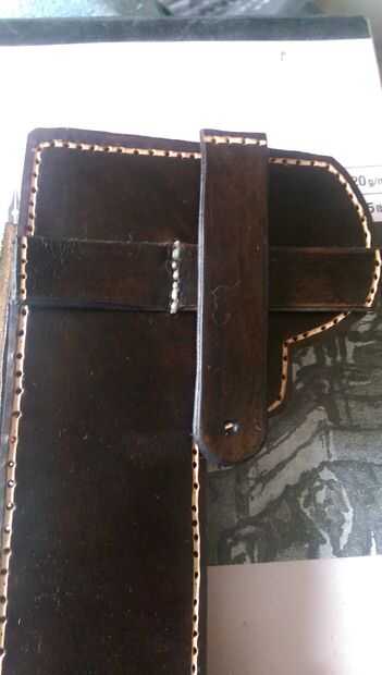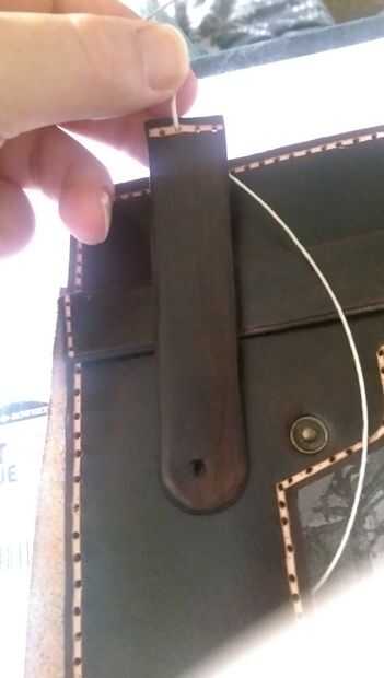 Una vez que todo ha sido perforado están listos para ser cosidos juntos, tomar su encerada de la pisada y un comienzo de aguja de cuero bajo una de las largas tiras dejando unos 150mm del hilo de rosca en el extremo, vaya dentro y fuera de los agujeros que ha hecho, recorrer todo el camino hasta llegar a donde empezó, lazo ahora alrededor y regresa el camino y volver a pasar por lo que no quedan huecos en la la costura