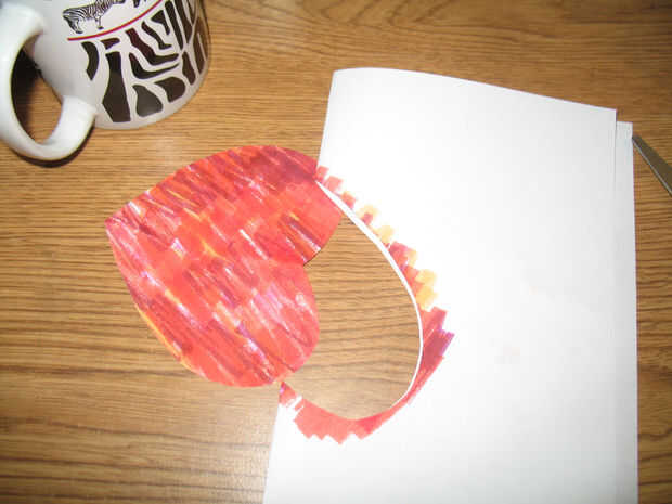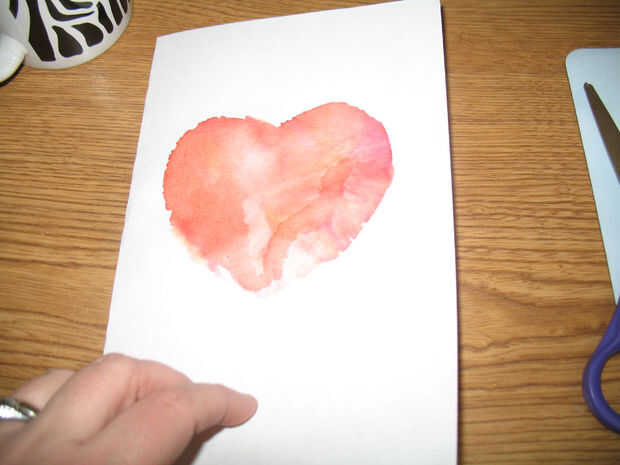 hacer una tarjeta de impresión de un único corazón en cuestión de minutos utilizando marcadores, agua, pincel, tijeras y papel. En primer lugar, utilizar marcadores en forma de un corazón de color, luego recórtalo, añada agua para hacer los colores juntas, poner el corazón en un papel doblado de una tarjeta de impresión de un único corazón!