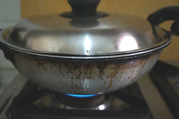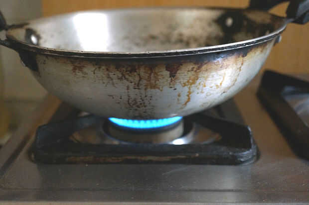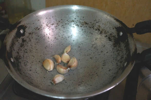 Caliente el sartén sobre calor completo durante aproximadamente medio minuto. Recuerde, cuanto más pequeño el pan, más rápido será. Una vez que está lo suficientemente caliente, coloque el ajo en la cacerola, cubrir con una tapa y baje el calor al punto bajo.