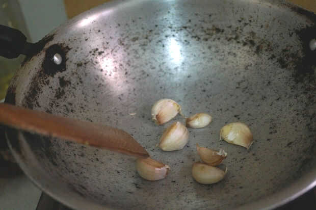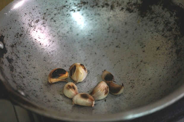 Una vez que todos los lados de los dientes de ajo han obscurecido, apagar el fuego y dejaron el pan sentado a un lado por un par de minutos se enfríe lo suficiente para la manija, o más tiempo si le tienes algo más urgente que hacer.