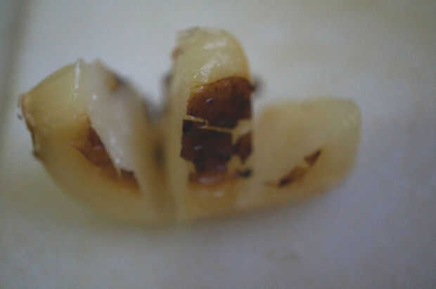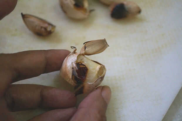 Los dientes se desprenda fácilmente, y el ajo dentro debe ser suave y blanda. Si quieres el ajo más firme, solo dejarlo reposar unos minutos más.