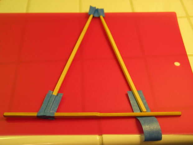 Así que usted debe comenzar con la base de los armazones. Es dos palillos verticales con cinta a palillos horizontales 1. Los palillos verticales son alrededor de 1 3/4 pulgadas desde el extremo de la horizontal. Tenga en cuenta que las tapas de las piezas verticales forman un marco y finalmente casi cumplirá, así que cuando usted los fondos de la cinta, asegúrese de que instales de una manera que fácilmente vendrán juntos en la parte superior al que la parte superior de la cinta.