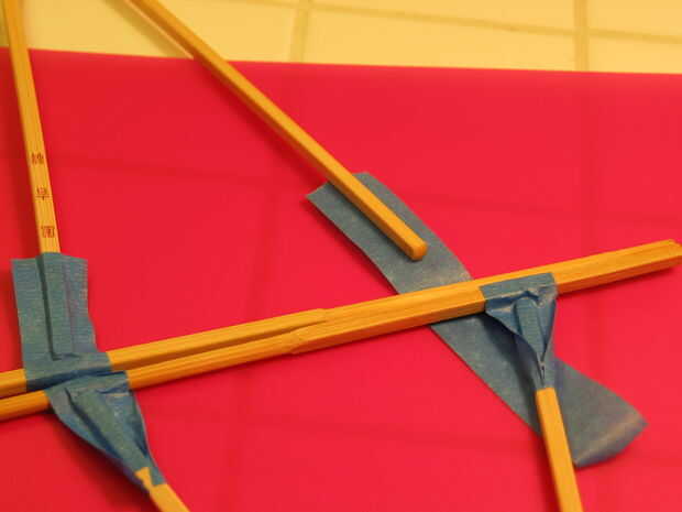 Tuve dos estilos diferentes de palillos para trabajar con. Hubo algunos cónicos y algunas que eran sólo alrededor de cilindros. Aunque eran la misma longitud. Usé 4 emparejar los cónicos para los lados de un marco porque es importante que cumplen en el mismo punto. Los otros no importa y puede ser cualquier estilo, asegúrese de que tienen la misma longitud.