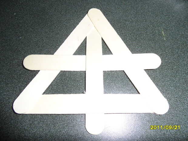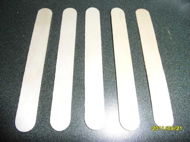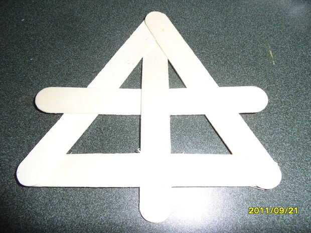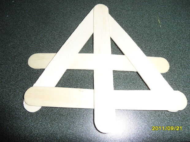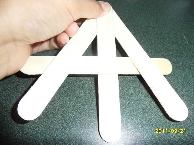 esto es fácil de construir y sólo utiliza 5 palitos. Explota cuando golpea el suelo. Un popsicle stick mi descanso pero generalmente no sucede.Paso 1: Esta es la parte fácil Solo mira la imagen.Paso 2: Esto es cuando se pone duro Asegúrese de constan