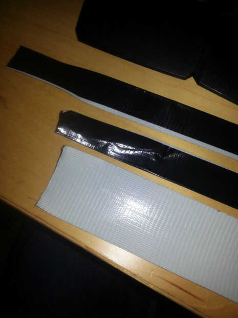 1. tomar al menos 3 tiras de cinta adhesiva, más larga que la cuerda te necesita (se pierden algunos longitud debido a tejido).