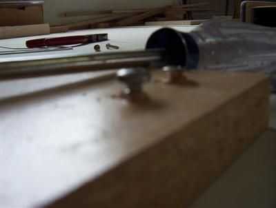 Atornillar los tornillos en la esquina superior derecha, una parte posteriora más lejana que la otra (aproximadamente 1,5 cm/0,6 pulgada de distancia). No tornillo en todo el camino, deje suficiente espacio para las perchas a pasar debajo de ellos. REPITA PARA EL OTRO LADO.