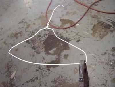 Gire la percha en la parte superior a Desatadlo. Utilice los alicates para doblar la sección resaltada del alambre en el cuadro. Hacer esto para ambos ganchos.