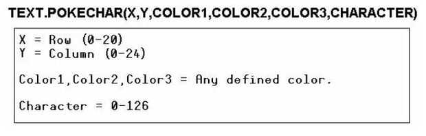 Texto. POKECHAR(X,Y,COLOR1,COLOR2,COLOR3,Character)