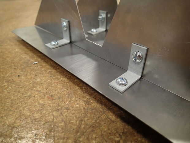 - después de decidir cómo ancho desea que cada compartimento que, colocar los montajes divisor-soporte en la bandeja y marque donde los agujeros necesitan ser perforado