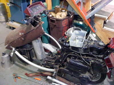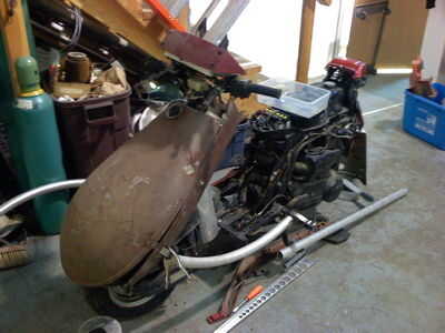 Las primeras etapas de este proyecto fueron muy parecidas a la de mis esculturas. Juntó una gran colección de objetos de aluminio grandes para soldar juntos como los paneles de la carrocería. Cubiertas de la lámpara de calle elaboraron para ser el mejor formas básicas. Su diseño de lágrima hacía un buen ajuste para el look "vintage". Tomé más atención (quizás innecesario) para fabricar los paneles principales que utilizaron los puntos de montaje en el marco original. El pensamiento era el que menos puntos de conexión provocaría menos vibración.