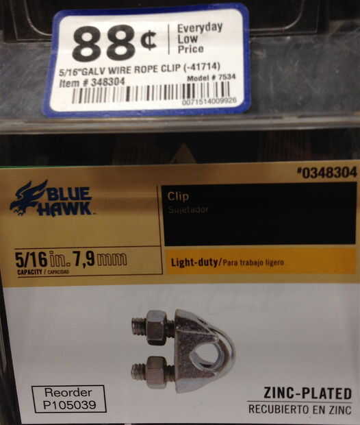 3. 5/16" cable glvanized clip $0,88 cada (comprar dos)