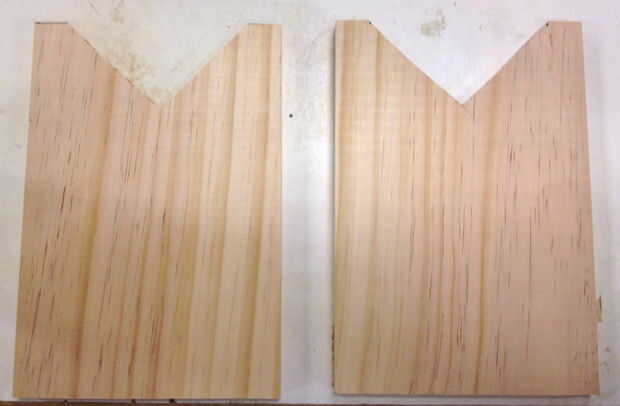 2. en dos de estos 8" piezas, cortar una forma de v (triángulo rectángulo) en un extremo. Estos hacen idénticos. La forma de v debe ser lo suficientemente grande como para acomodar al menos la mitad del diámetro de la botella de vino.