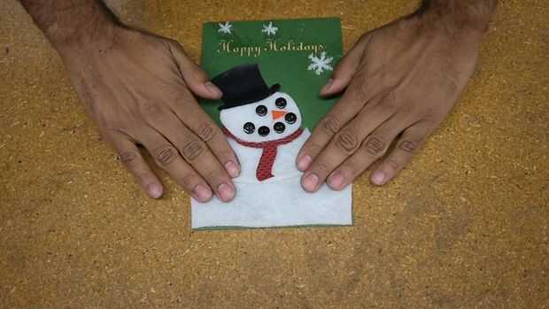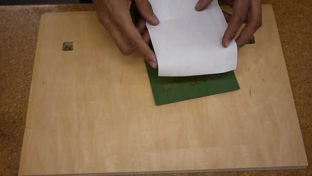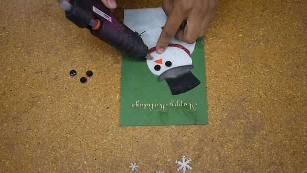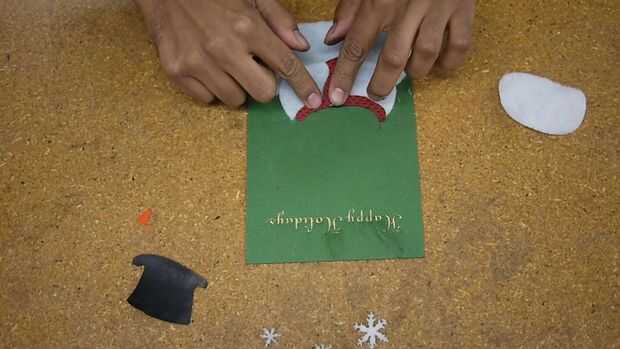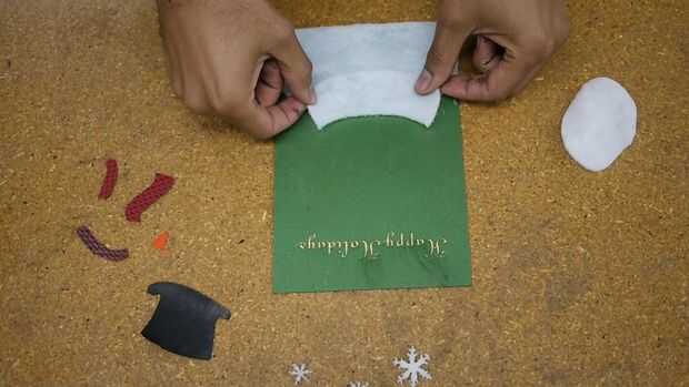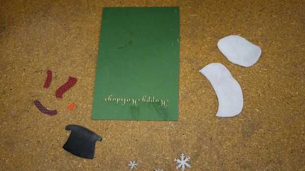 A continuación caliente pegué todas las piezas del collage en la cartulina. Si su diseño es mucho más complicado, puede mantener una imagen de referencia en la mano para recordar cómo montar las piezas.