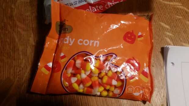 bolsa de rosquillas de palo, maíz de caramelo, bombones, chocolates, olsf papel y bolsas de plástico.