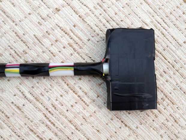 cuidadosamente use cinta negra para colocar todos los alambres en lugar y smarten la unidad para arriba.