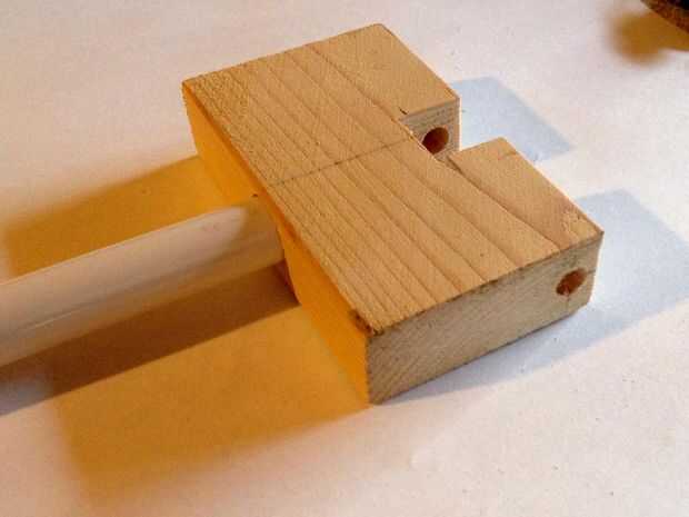 Seleccione un bloque de madera un poco más gruesa que el tubo, perfore un agujero de toda la longitud.