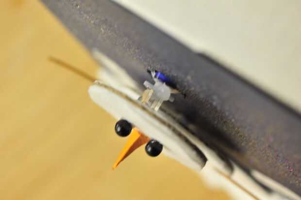 Después de insertar sus servos que puedes o comenzar a juntar todas las piezas o saltarse este paso y guardarlo hasta han probado los servos con nuestro código. De cualquier manera funciona, sin embargo, si usted está generalmente un fabricante más prudente puede que desee probar los servos antes de colocar todas las piezas del muñeco de nieve.
