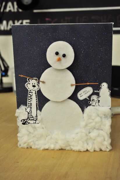 Empezamos todo armar pegando la parte más grande del cuerpo de muñeco de nieve en la parte inferior de nuestra caja. Luego en capas de la parte superior del muñeco de dos nieve y averiguado donde hemos querido aplicar el pegamento. Dimos nuestro muñeco de nieve alguna expresión pegando en algunas cuentas como ojos y una nariz de zanahoria hecha de papel de cartulina. Para los brazos encontramos algunas ramas fuera y cortar estos hasta el tamaño adecuado antes de pegarlas en el torso (parte media del cuerpo).