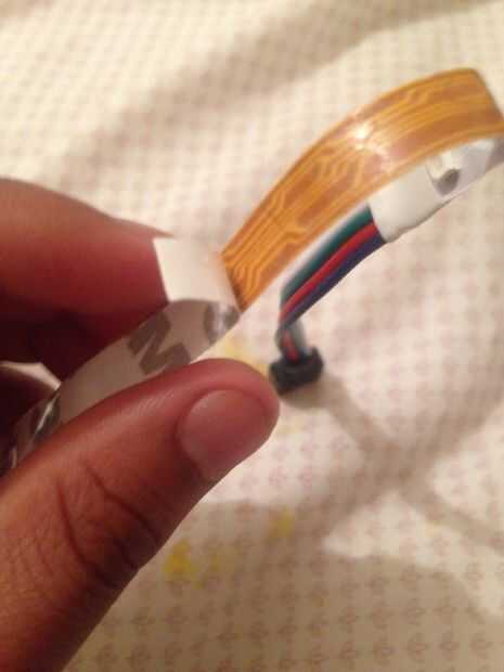 Recuerda será algo como un papel y es una cosa pegajosa para pegar la tira del LED a la pared