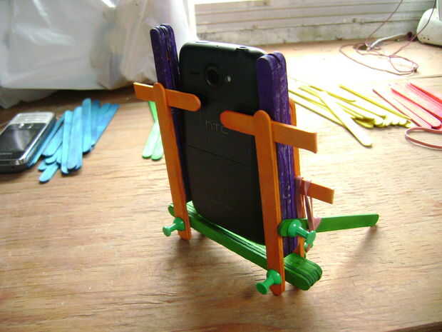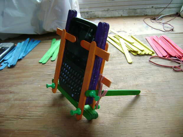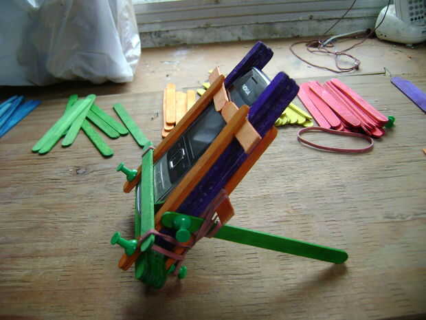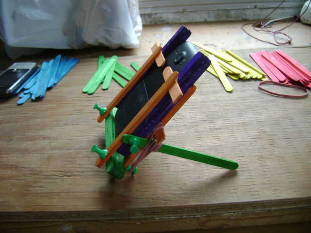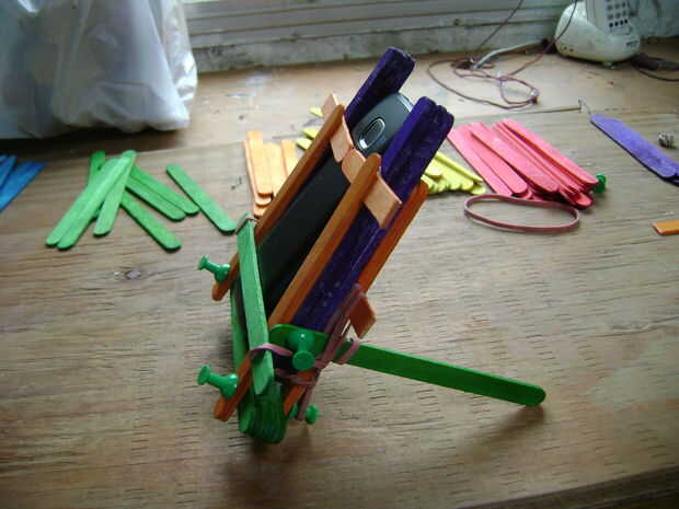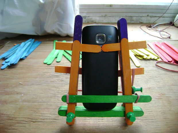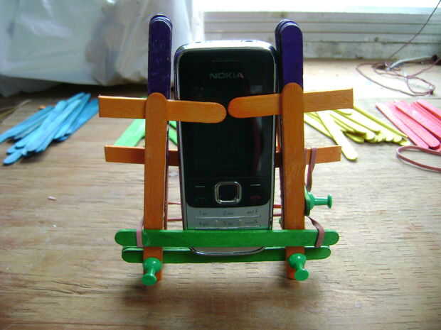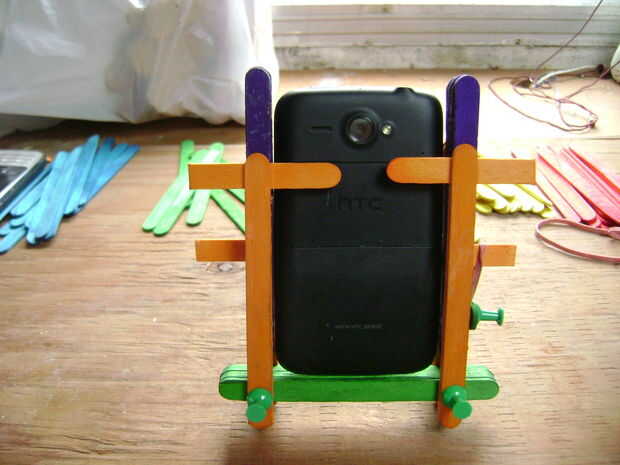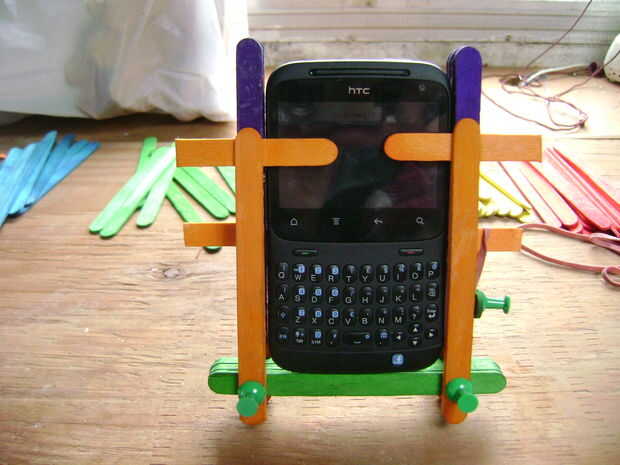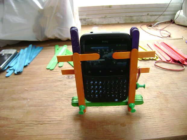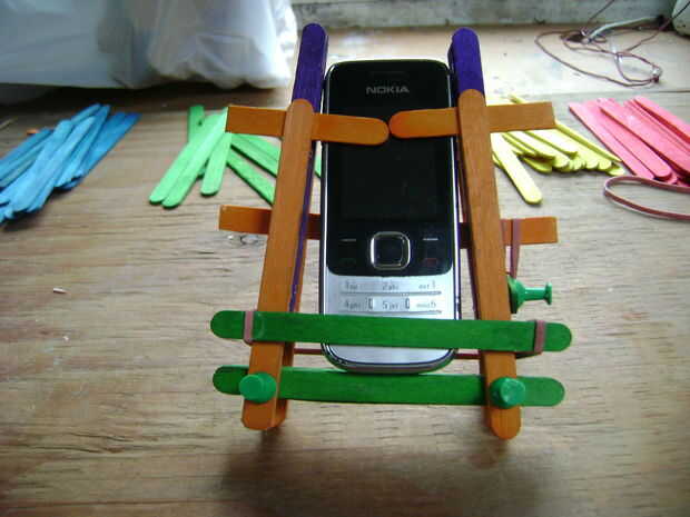 En las últimas fotos, pongo en un Nokia viejo que tengo. Ya fue demasiado y quería caer, acabo poner otro palo en la parte delantera y utiliza bandas de goma otra vez.