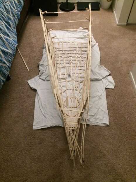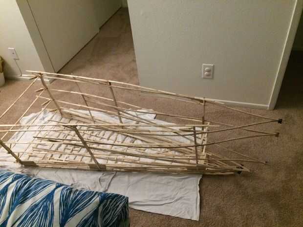 También pongo algunos de los palos de 5 pies en la estructura inferior, para darle añadido soporte.
