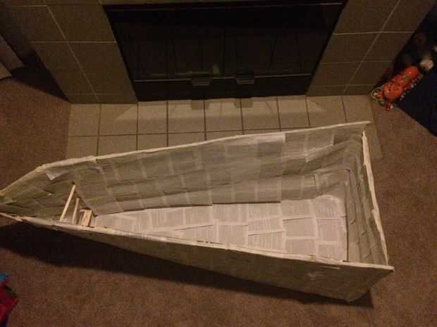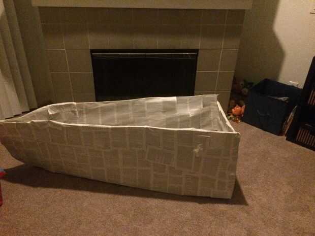 El interior y el exterior de su barco de papel Mache. Además, recomiendo múltiples, múltiples capas de papel maché hasta que sienta que su barco es lo suficientemente fuerte como para remo.
