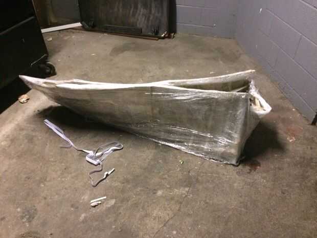 La mala noticia: no quiero que mi barco a flote. Quería montar en él; demostrar su valía como un barco real. Por desgracia, el bastidor de base no apoyó mi peso mientras trataba de poner todo mi peso en él. El barco realizó bien cuando tuve una pierna en la que me hace creer que pueden soportar de manera segura por lo menos cuarenta libras, pero una vez que pongo el segundo pie en, el fondo quebró y el barco entero inundado. Lamentablemente no tengo un video de este épico evento pero tengo una foto del barco mojado, destruido.