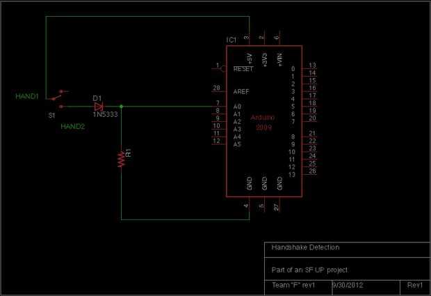 ¿1) recuerda los cables pelados del circuito de arduino? Dar a cada mano una generosa de cable de 18 AWG. Atamos el alambre a las manos por pelar el cable y luego la grabación en el dorso de las manos. Terminar el otro extremo del cable donde estaban los cables pelados en el paso 2. El esquema representa esto como "la mano" y "parte dos." Un 2 º par se añadiría la misma manera como se describe en el paso 2. Luego coloque las manos a una pared con cinta de doble cara. Coloque el 3d impresos "interruptores de luz" sobre las manos y fijar con cinta de doble cara también. Asegúrese de que la brecha entre las manos es más grande que una persona puede abarcar, así que necesita dos personas!