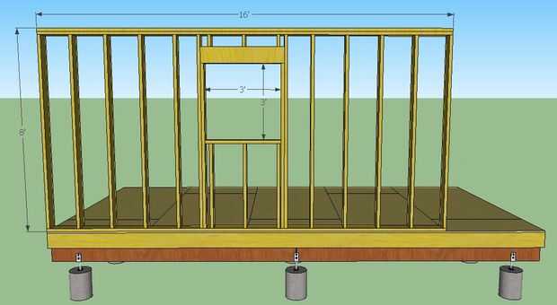 Las paredes laterales son de 8 pies de alto por 16 pies de largo y construidos de madera de 2 "x 6" en el centro de 16 pulgadas. Doble superior placa, placa base individual y rincones de California para permitir más aislamiento.