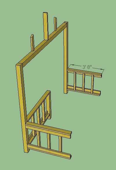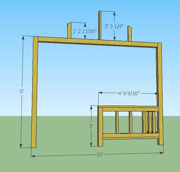 El porche es compatible con el alero y se construye de 4 "x 4" x 8' 2 "x 4" madera y postes de la esquina. Si está utilizando la Fundación de bloque de cubierta que probablemente tendrá que ajustar la altura de los pasos.