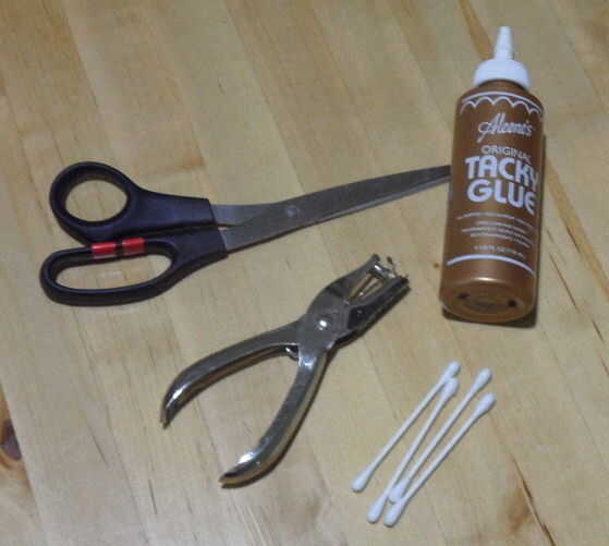 Tijeras Sacador de agujero Pegamento (pegamento pegajoso para proyectos interiores y cabrito; pegamento impermeable para proyectos al aire libre) Toothpics extender pegamento Q-tips, para limpiar el exceso de pegamento Sharpie
