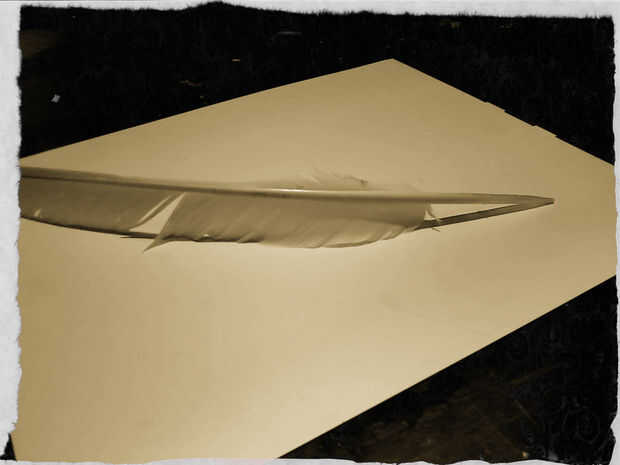 Para hacer una pluma necesita una una pluma de un pájaro más grande. Usé una pluma de pavo pero hará cualquier pluma de ala grande. Verifique que la pluma se siente bien en su mano como un instrumento de escritura.