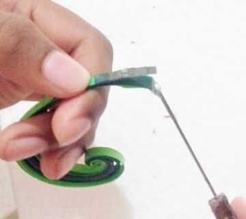 Eligió los colores de su elección. Luego apilarlas juntas y pegar los bordes. Ahora envuelva todo tus franjas sosteniendo firmemente. Una vez hecho esto, déjala ir. Como usted puede haber notado en la imagen las tiras no siempre parte con distancia igual. Esto es porque a veces ciertas tiras de color pueden ser un peso diferente y por lo tanto es diferente la manera que resortes detrás.