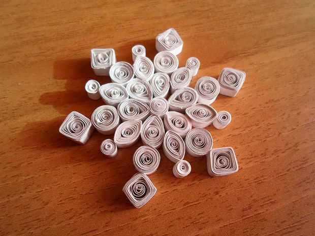 Pegar el borde de las plazas a las bobinas sueltas grandes hecho en el paso 8.